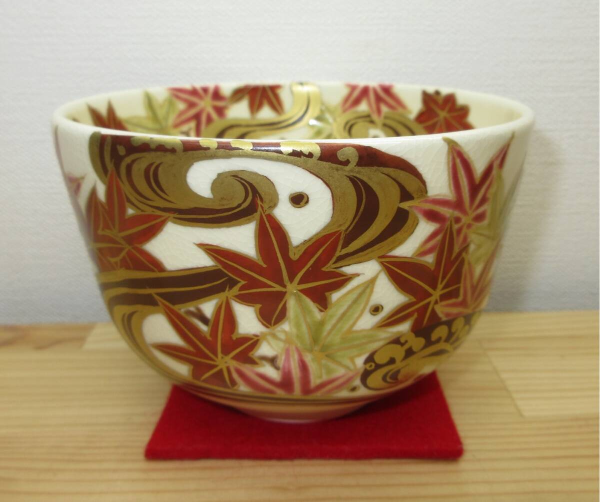 - 【逢絢亭・新品】茶道具 茶碗 京焼 仁清 流水紅葉の図 加藤如水 共箱入り