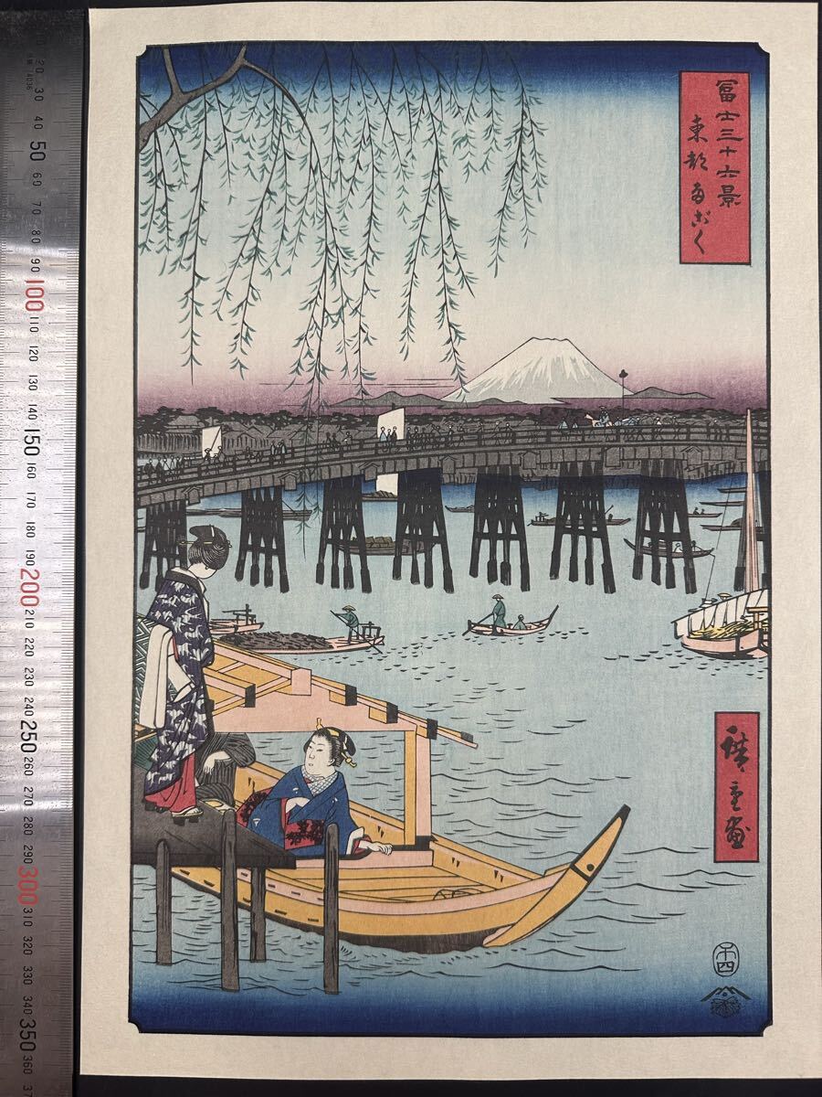 - 【真作】大正期 浮世絵木版画 歌川広重「冨士三十六景 東都両ごく」名所絵 大判 錦絵 保存良い