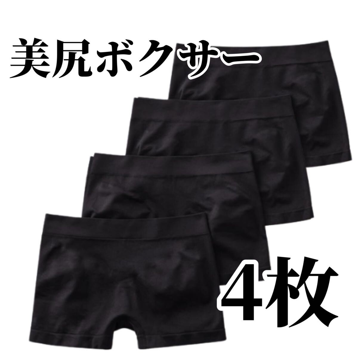 > ボクサーパンツ 4枚セット ショーツ ブラック 黒 レディース 3D ボクサーショーツ パンツ 下着 M L XL LL 美尻 フリーサイズ ストレッチ