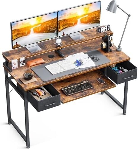- 【新品】ODK パソコンデスク キーボードスライダー付き 幅120cm ゲーミングデスク 机 pcデスク 引き出し2杯付き モ