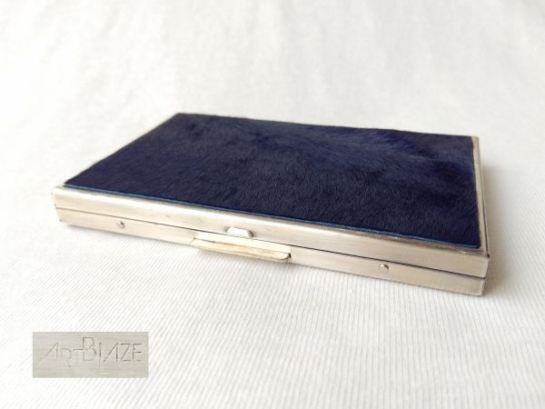 - ARTBLAZE レザー シガレットケース 起毛 ファー USED レトロ タバコケース 煙草入れ 喫煙具 名刺入れにも 紺
