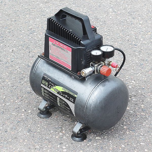 - 【新潟発】アースマン オイルレスエアーコンプレッサー10L ACP-100OL 100V 50/60Hz 屋内用 コンプレッサー エアー エアーツール 工具 中古