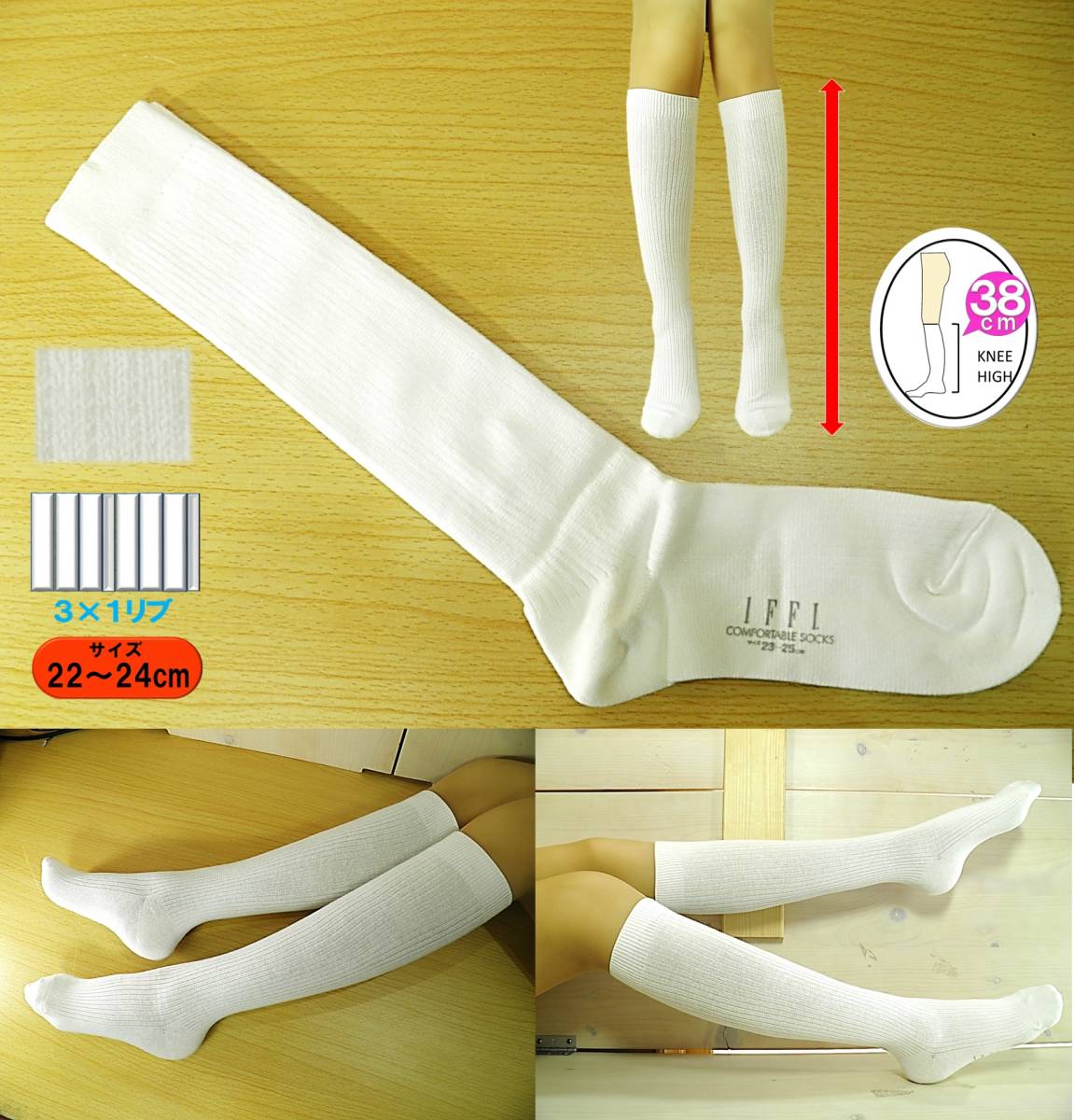 - 【レッグウェア★未使用品】白 リブ ハイソックス◆3×1リブ◆32cm丈◆22-24cm◆スクール◆コスプレ◆
