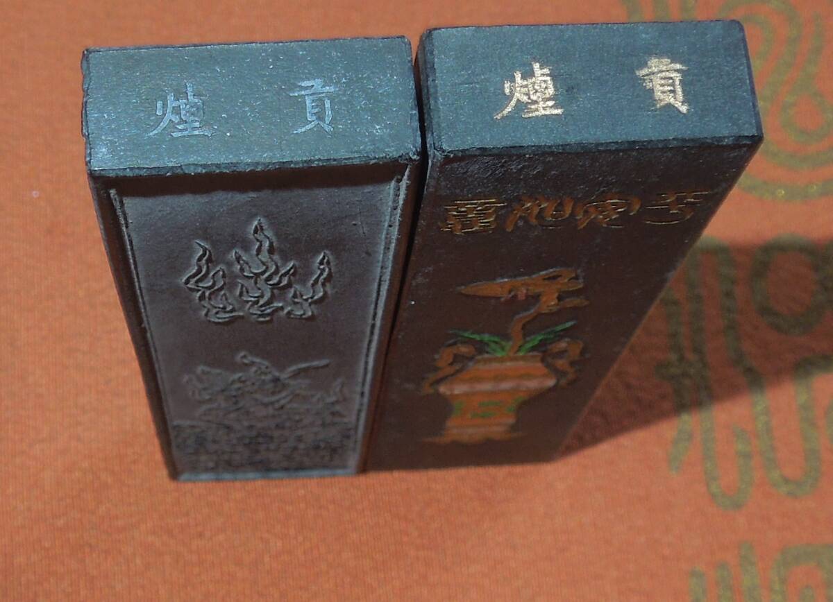 - 書道 墨・古墨 徽州 休城 老胡開文製 貢煙 2点 大富貴亦寿考 開天容