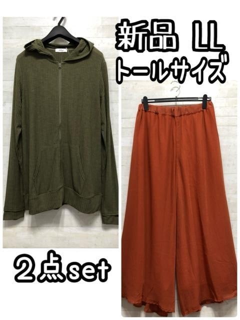 - 新品☆LLトールサイズ♪薄手パーカー&レンガ色ワイドパンツ♪☆Q316