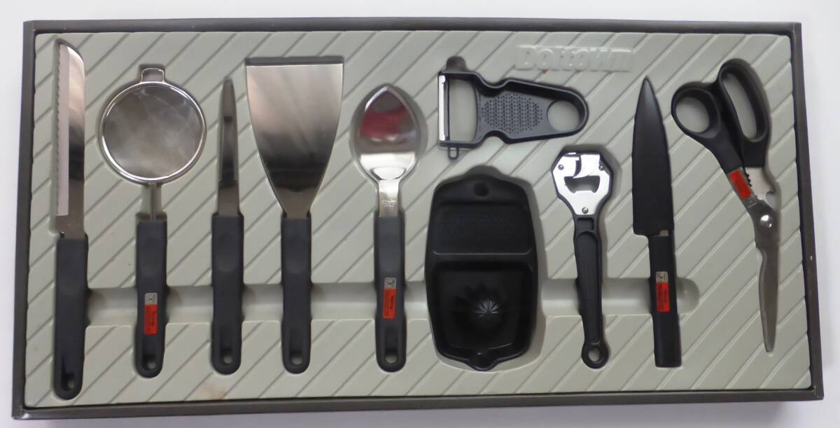 - ★調理器セット 小道具セット キッチンハサミ、鞘付フルーツナイフ、アイスクリームスプーン、など10点セット 日本製★未使用新品