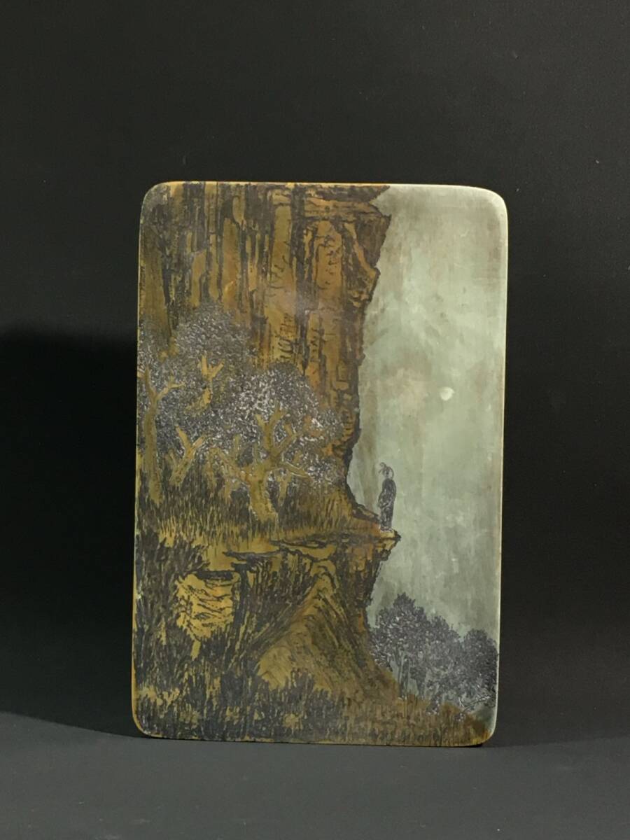 > 永し 清時代 在銘 端石彫 天高地闊 松花盒硯 端渓硯 極細工 書道具 文房具 置物擺件 古美術品 時代物 古董品 収集 旧家蔵出 中国唐物 A35