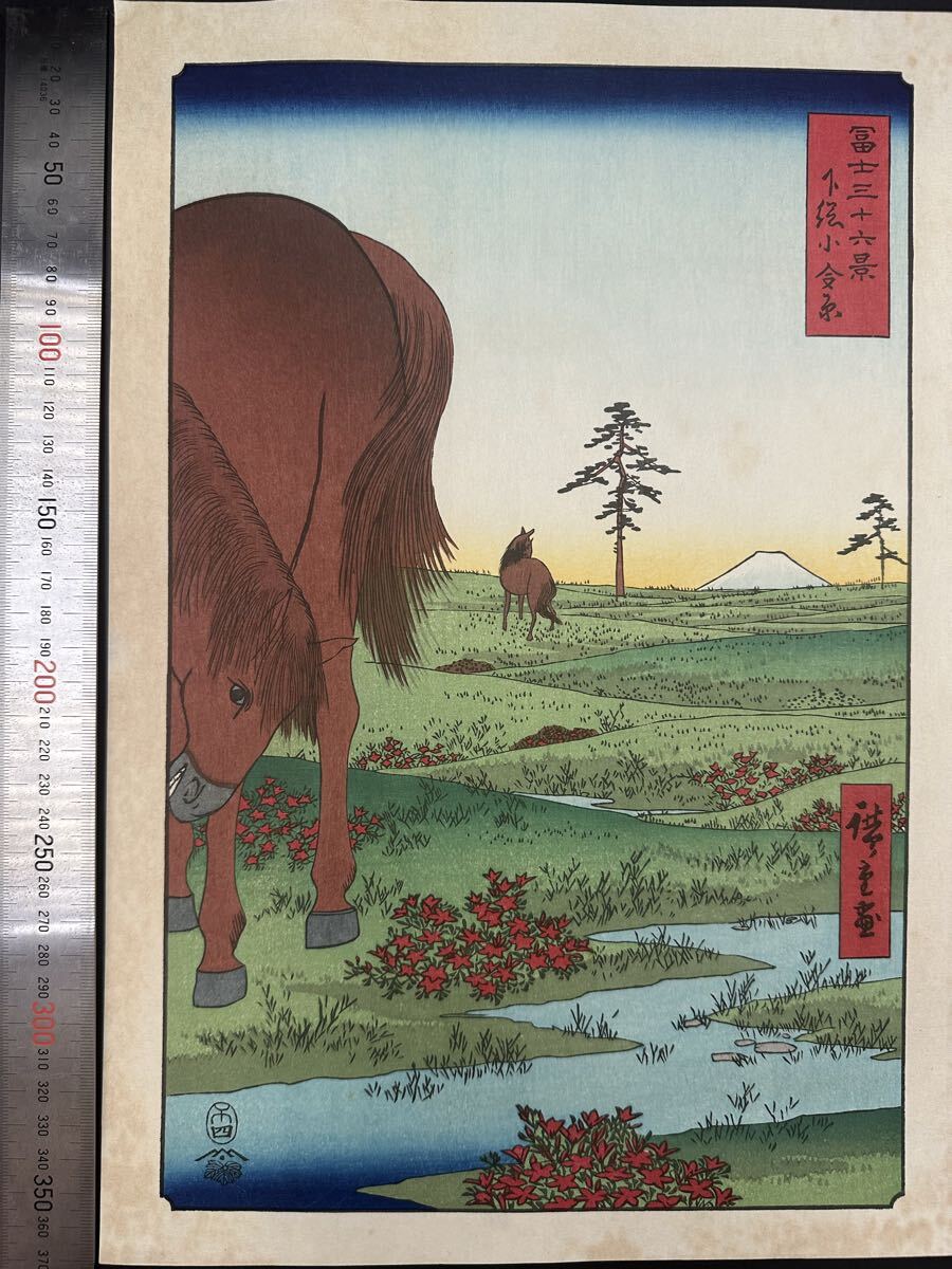 - 【真作】大正期 浮世絵木版画 歌川広重「冨士三十六景 下総小金原」名所絵 大判 錦絵 保存良い