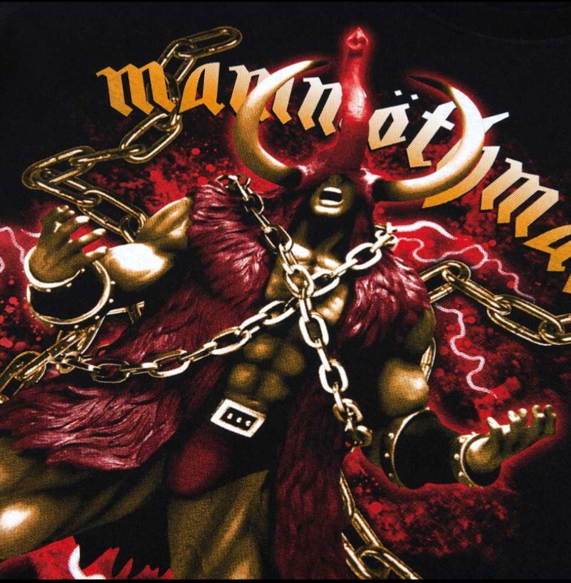 > キン肉マン/マンモスマン Tシャツ/ブラック/墓場のメタルシャツシリーズ 墓場の画廊 XL 身丈77cm 身幅58cm 袖丈24cm フェニックスチーム