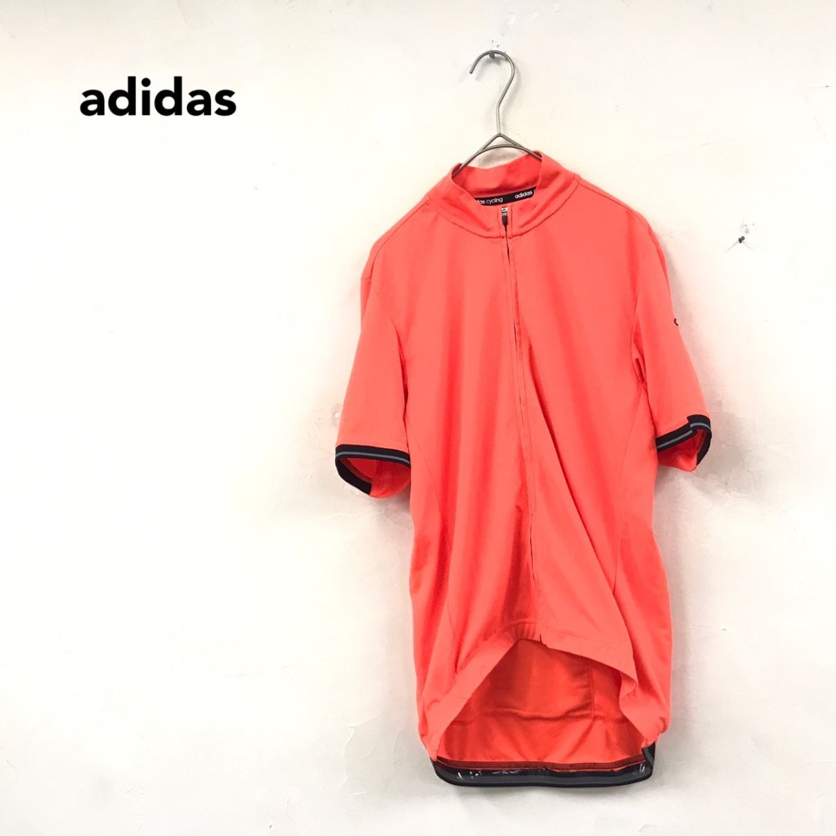 > 2K1671-N◆ adidas アディダス サイクルジャージ 半袖 フルジップ ロードバイク ◆ オレンジ系 蛍光 吸水速乾