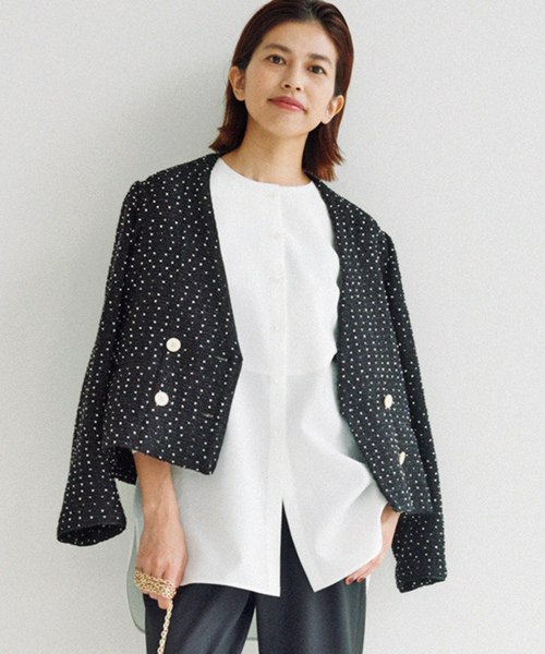 - 「IENA」 ノーカラージャケット 36 ブラック レディース
