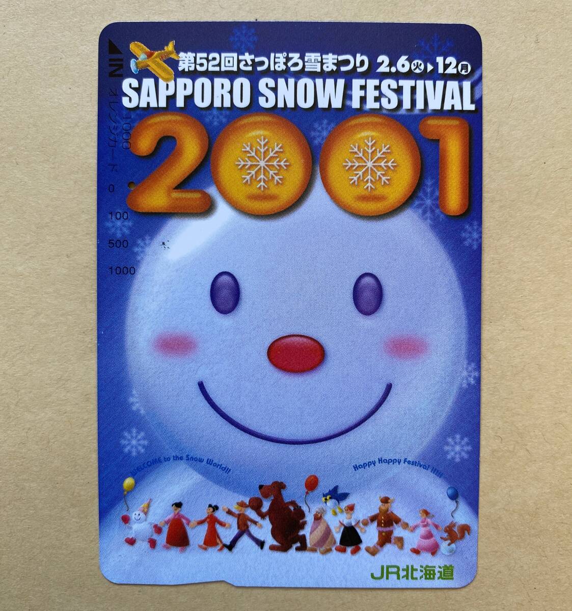 - 【使用済】 オレンジカード JR北海道 第52回さっぽろ雪まつり 2001