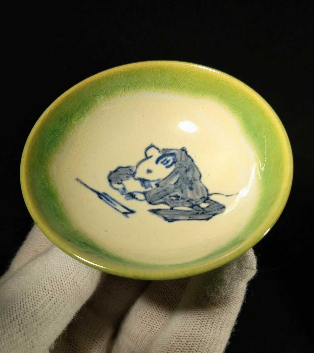 - 宮崎光星 「干支寿盃」 緑釉 色絵 鼠図 酒盃 共箱 ぐい呑 酒器 ぐい呑 九谷焼 現代美術展最高賞受賞者 b-04i114-cd