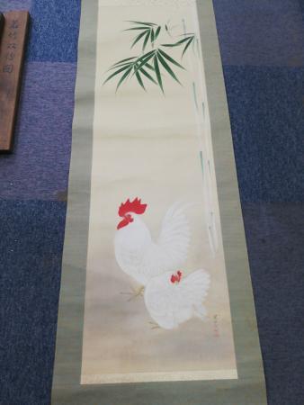 - 掛軸 竹若双鶏図 時代物 絵画 書 古物 箱付② 3RC5SR