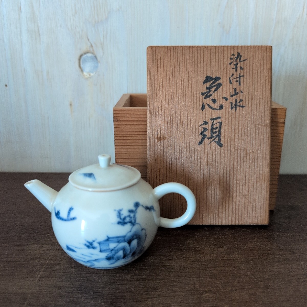 - 平安瑞光 染付 小 急須 共箱 茶道具 茶器 京焼 清水焼 陶磁器