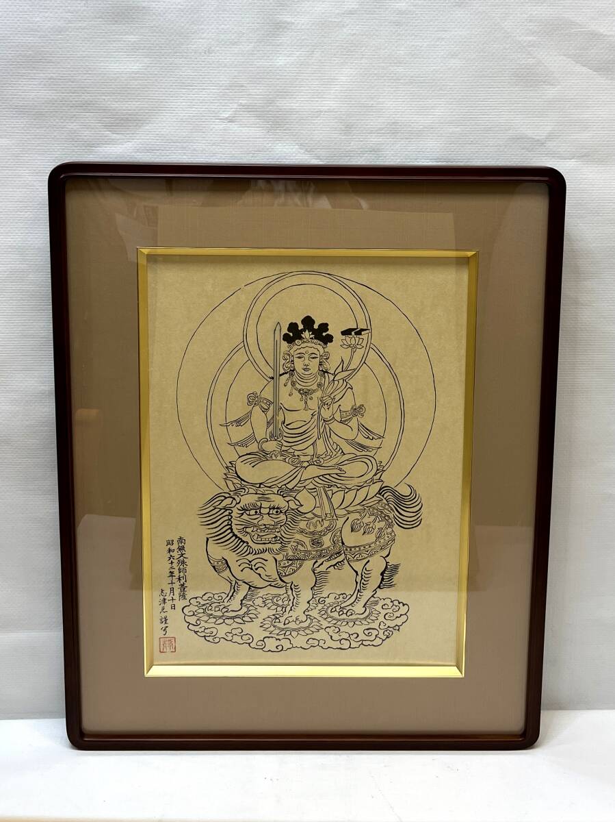 - 極美品!南無文殊師利菩薩 肉筆 吉田志津ゑ 額縁外寸510×630×23mm 木製額 文殊菩薩 獅子 日本画 美術品 アート 作家物 D