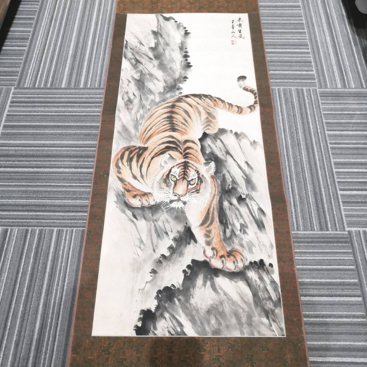 - 【19】動物 トラ 巻物 掛け軸 掛軸 日本画 骨董 日本書 伝統品 骨董品 時代物 年代物 美術品 芸術品 コレクション