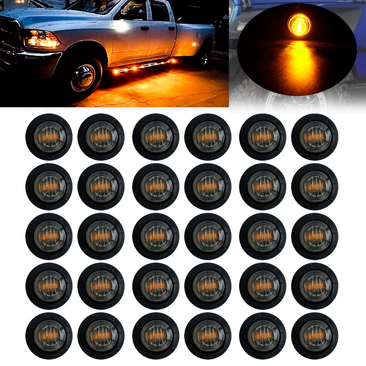 > 30個セット 車用 サイドライト LED ミニライト スモークレンズ 丸型 補助ライト 2cm バイク用 オレンジ 橙 12-24V マーカーライト t8553