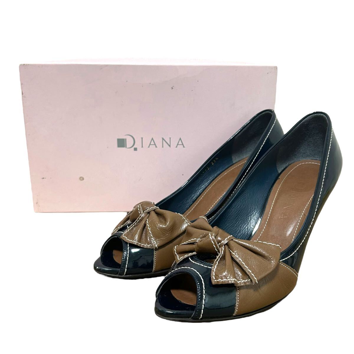 > DIANA(ダイアナ) レザーヒールパンプス エナメル オープントゥ ピンヒール ネイビー 日本製 23.5cm