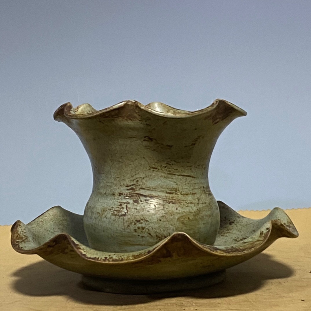 - 【超珍館蔵】宋 古陶瓷品 官窯 汝瓷 蓮花型花叉 瓷器 陶藝 古賞物 古董品 古美術品 時代物 旧家蔵出 稀少珍蔵品