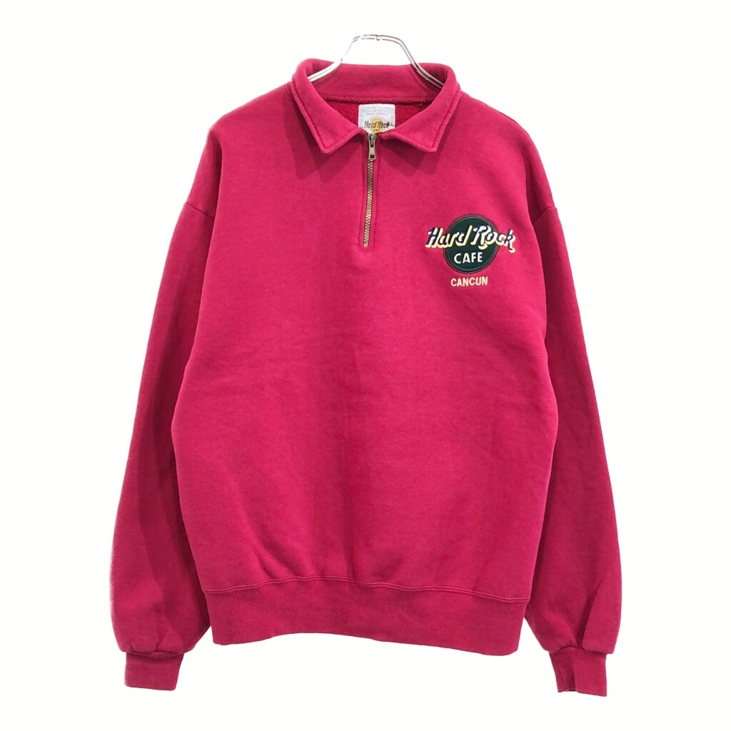 > 90年代 Hard Rock Cafe ハードロックカフェ ハーフジップ ワンポイントロゴ スウェット ワインレッド(メンズ L相当)中古 古着 V1971