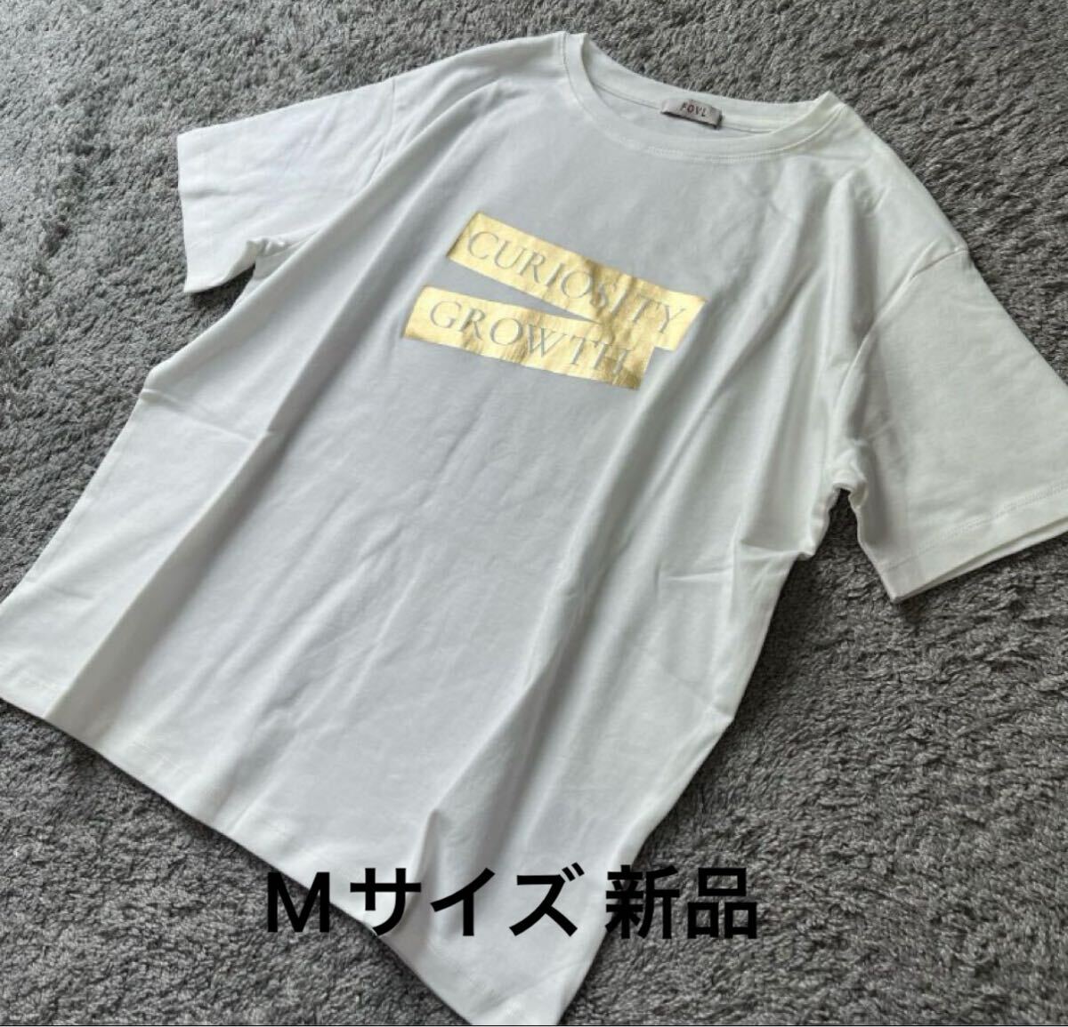 - ゴールドフレームロゴプリント半袖Tシャツオフ白M★ゆうパケット配送可能★新品20