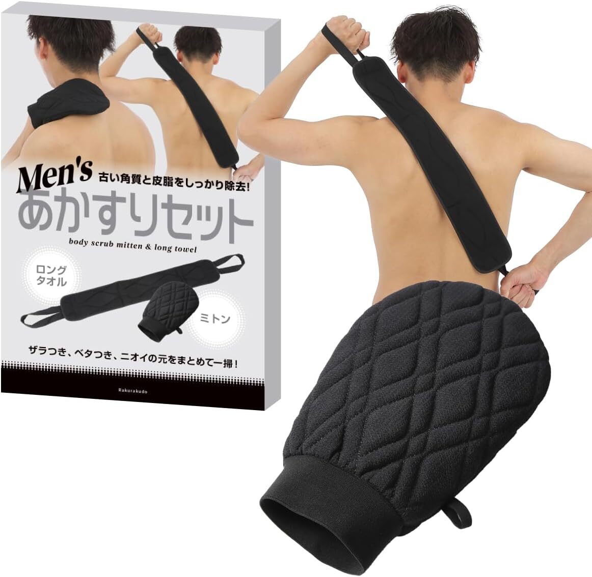 - ロングタオル、ミトンそれぞれ2個セット 体の垢がゴッソリ落ちる あかすり ボディタオル メンズ 垢すり 体臭予防 角質 皮脂 除去