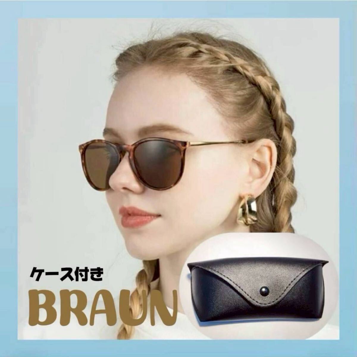 - ユニセックス サングラス ケース付き レディース メンズ 男女兼用 ブラウン