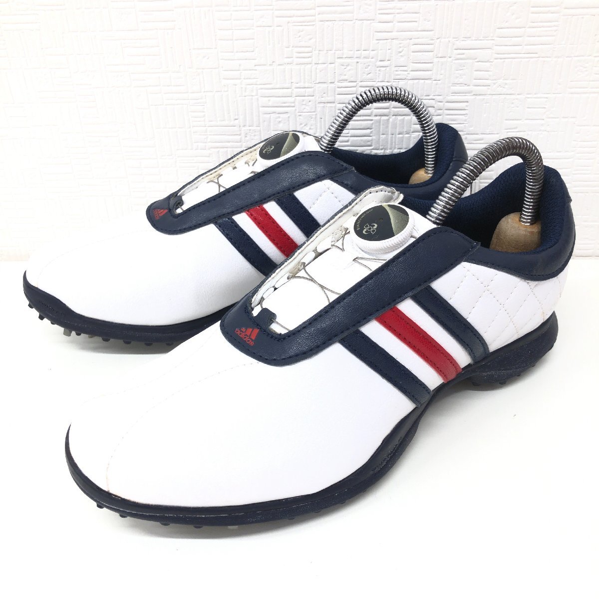 > ●adidas アディダス ドライバーボア ダイヤル式 ゴルフシューズ 23.5cm 白系 ホワイト系 スパイク 鋲交換式 ボアクロージング Driver Boa