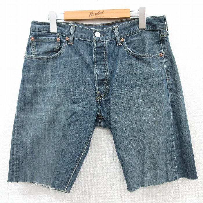 > W33/古着 リーバイス Levis 501 ショート パンツ ショーツ メンズ ヒゲ コットン 濃紺 ネイビー デニム 25apr01 中古 ボトム