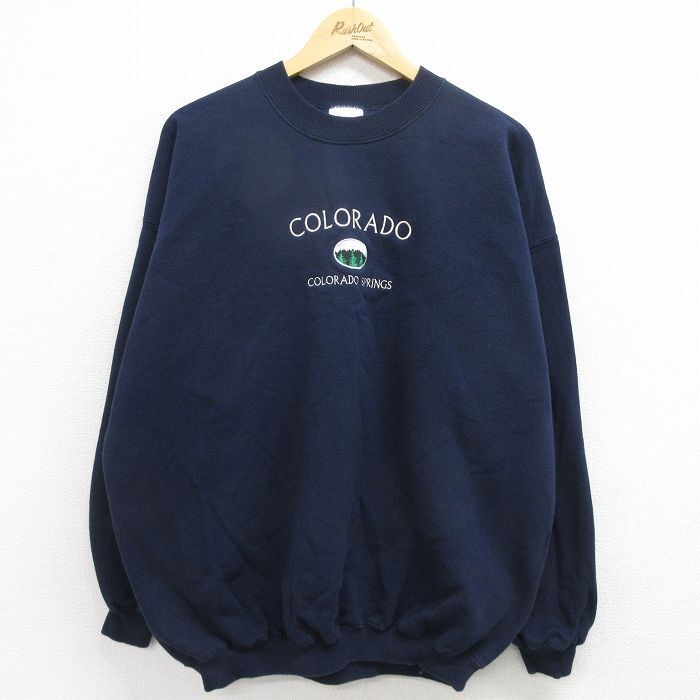 - XL/古着 長袖 スウェット メンズ 00s コロラド 刺繍 大きいサイズ クルーネック 紺 ネイビー 24sep13 中古 スエット トレー