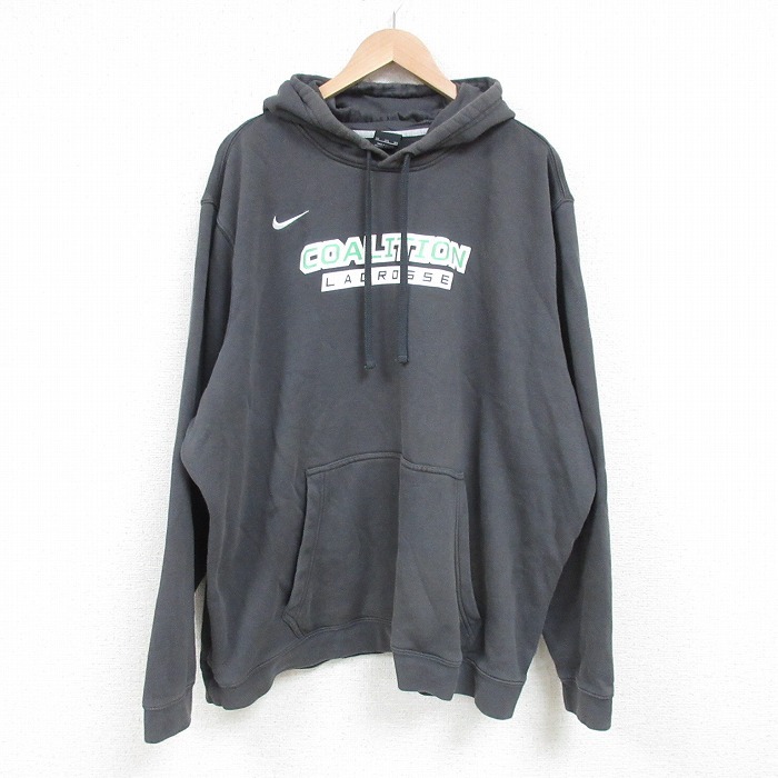 > XL★古着 ナイキ NIKE 長袖 スウェット パーカー メンズ ラクロス連合 大きいサイズ 濃グレー 25mar31 中古 スエット トレー