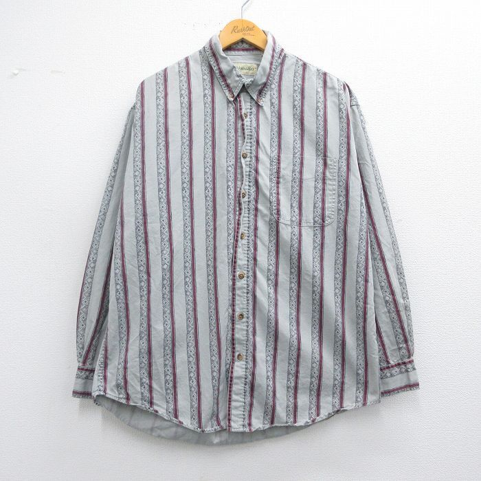> XL★古着 セントジョンズベイ 長袖 シャツ メンズ 90s コットン ボタンダウン グレー他 ストライプ 25mar31 中古 トップス
