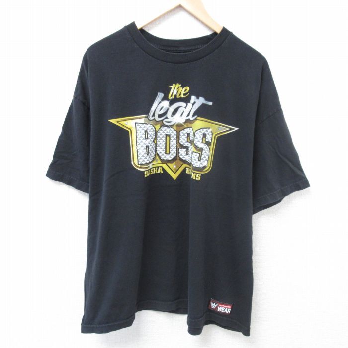 > XL/古着 半袖 Tシャツ メンズ ワールドプロレスリング BOSS 大きいサイズ コットン クルーネック 黒 ブラック 24jun03 中古