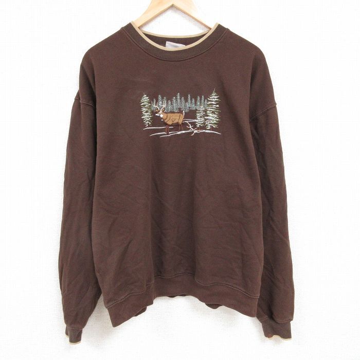 - XL/古着 長袖 スウェット メンズ 00s シカ 刺繍 大きいサイズ クルーネック こげ茶 ブラウン 24sep02 中古 スエット トレー