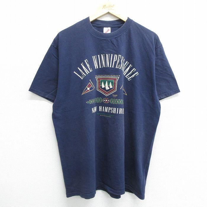 - XL/古着 ジャージーズ 半袖 ビンテージ Tシャツ メンズ 90s ウィニペソーキー湖 大きいサイズ コットン クルーネック 紺 ネ