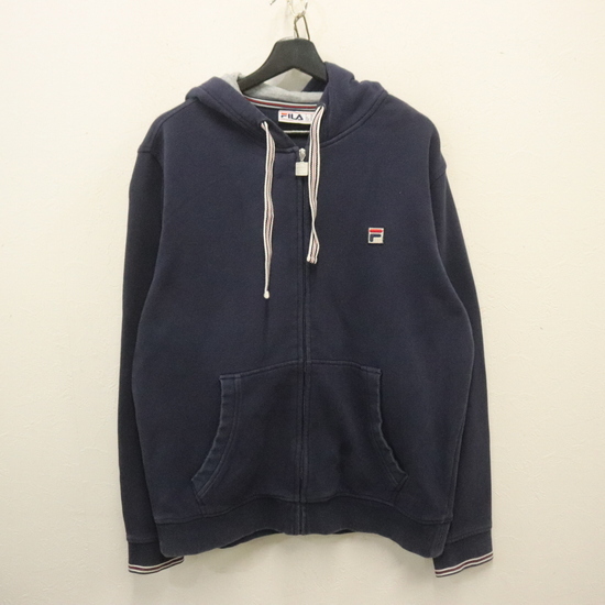 > R734 2000年代製 FILA フィラ ジップパーカー■00s 表記Mサイズ ネイビー フーディー フルジップ アメカジ ストリート 古着 古着卸 激安