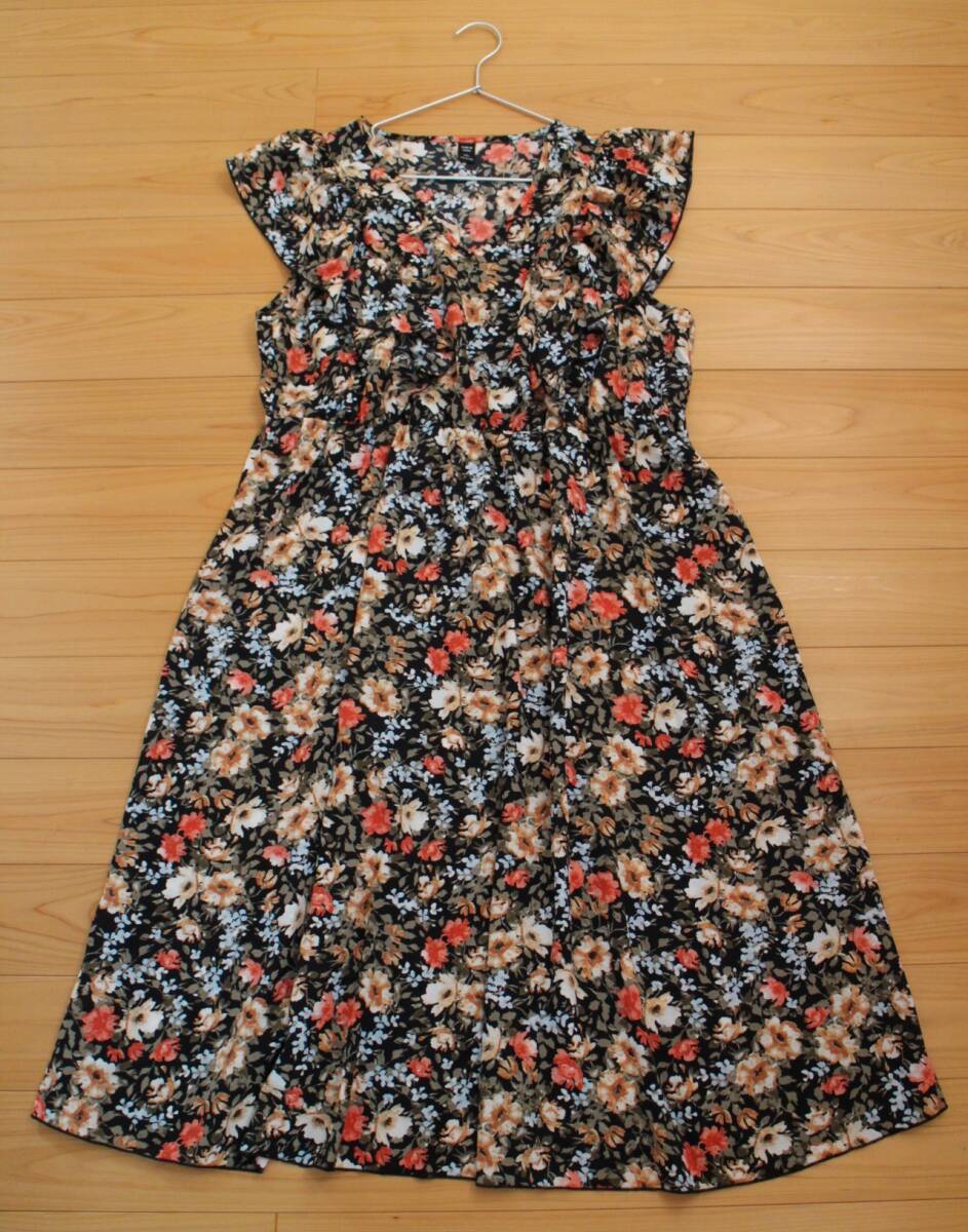- 【賢くおしゃれ♪】*SHEIN CURVEシーイン*大人可愛いフェミニン花柄着るだけで主役ドレスワンピース 3XL大きいサイズ ブラック 秋パーティ