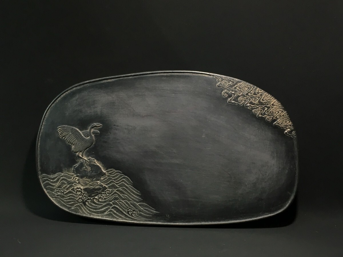 - 清代 端石浮彫 一品當朝文房端渓硯 貽汾銘【仁】手彫り 文房具 書道具 中国古硯 蔵出 骨董