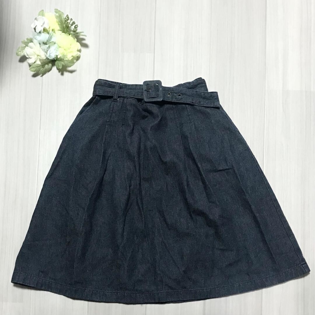 - MusMusM デニム調ひざ丈 フレアスカート サイズ2(M相当) ウエスト62〜66cm ヒップ87〜91cm b0497