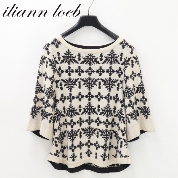 - 【KA201】美品◆iliann loeb イリアンローヴ 総柄 リネン混 ニット ワイドスリーブ プルオーバー トップス ベージュ系