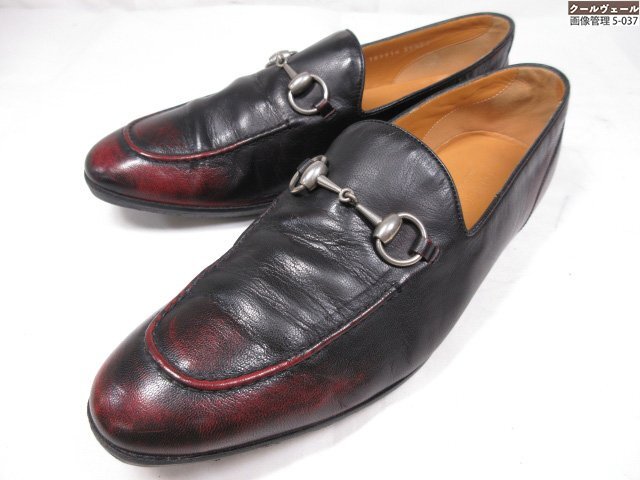 > 美品 【グッチ GUCCI】 189914 Uチップ ホースビットローファー スリッポン 靴 (メンズ) size39.5EJ ブラック×レッド系 ◇37MZA8181◇
