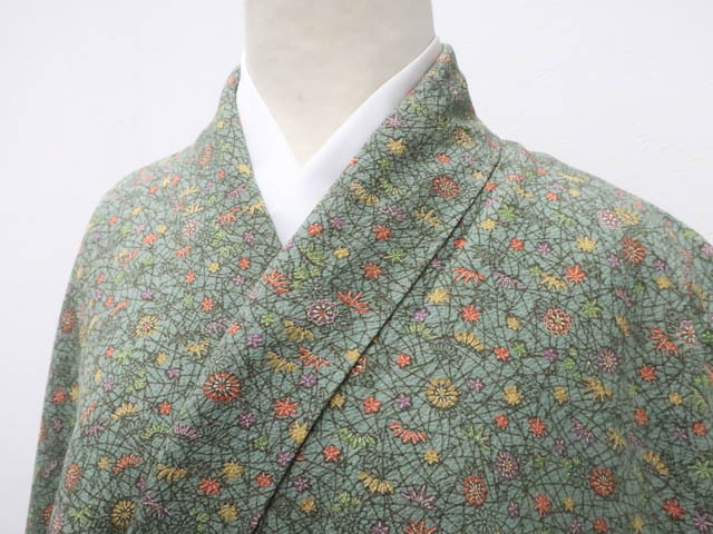 > 《京都一輝堂》リサイクル着物 小紋 作家物 落款入り 古典 正絹 身丈約164cm 裄丈64.5cm soi7z09-9