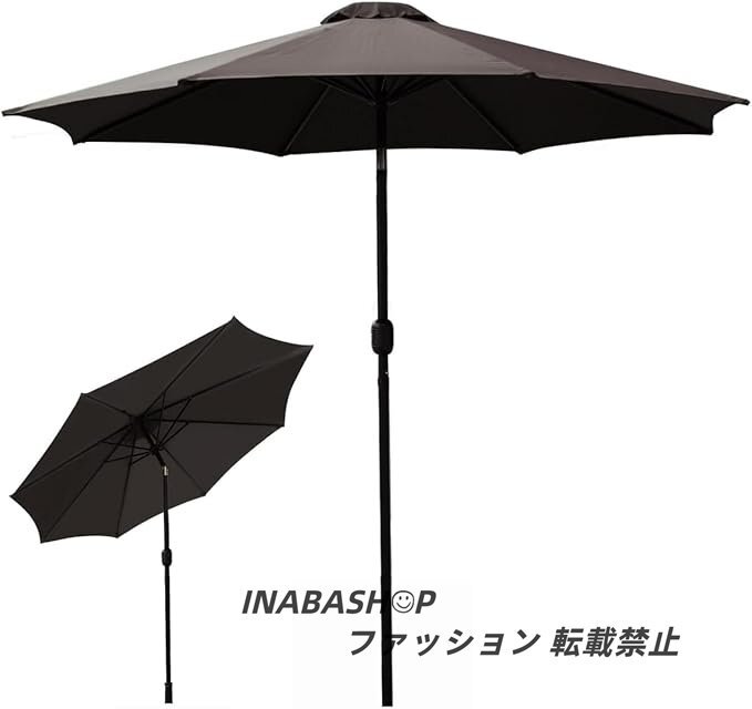 - ガーデンパラソル大型日除け 270cm風に強い撥回転ハンドル式角度調整可能ベランダ庭カフェテラス直径270cm×高さ237.5Cm