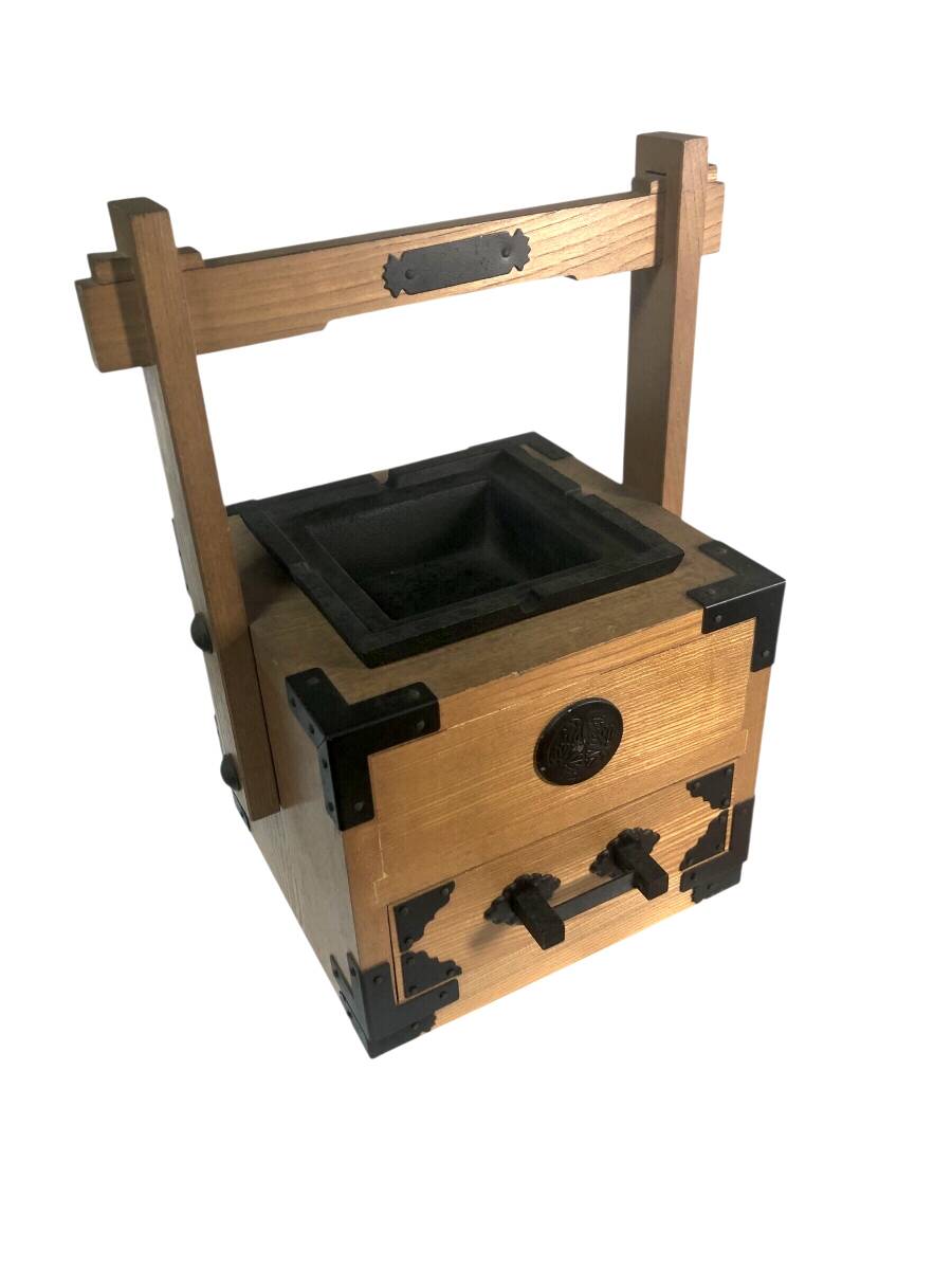 ・骨董 灰皿 行灯型 小引き出し 家紋 葵紋 三つ葉葵 古民具 和家具 インテリア 中古