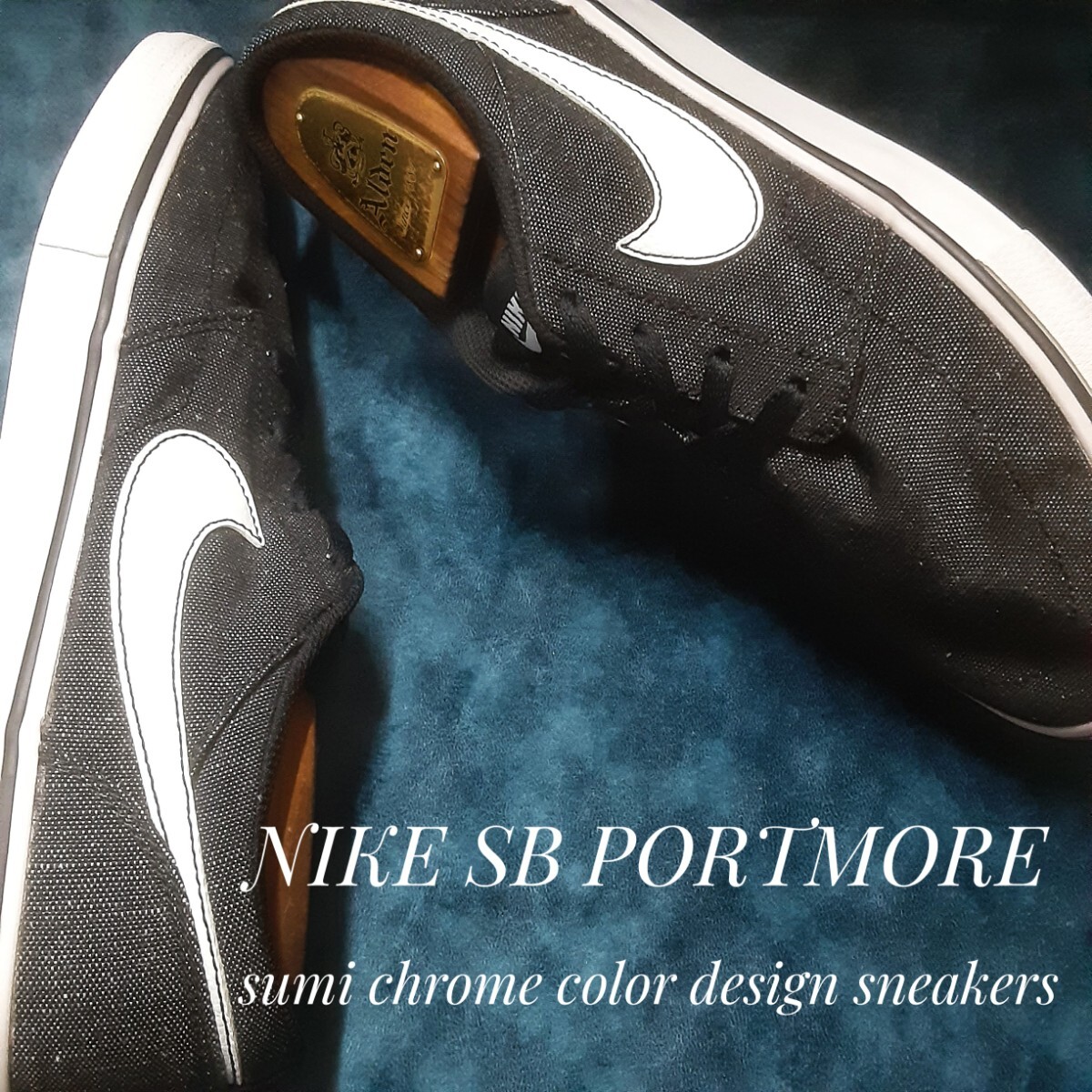 - 最値!希少19年製!シャンブレーファブリック!スミクロームカラー!ナイキ SB ポートモア高級スニーカー!ブラック×ホワイト!黒白 26.5cm