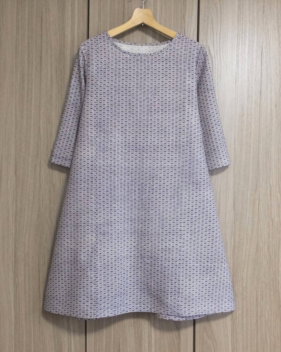 - ♪送料無料 ハンドメイド 着物リメイク 古布 正絹 紬 菱 紫系 シンプルAラインワンピース♪