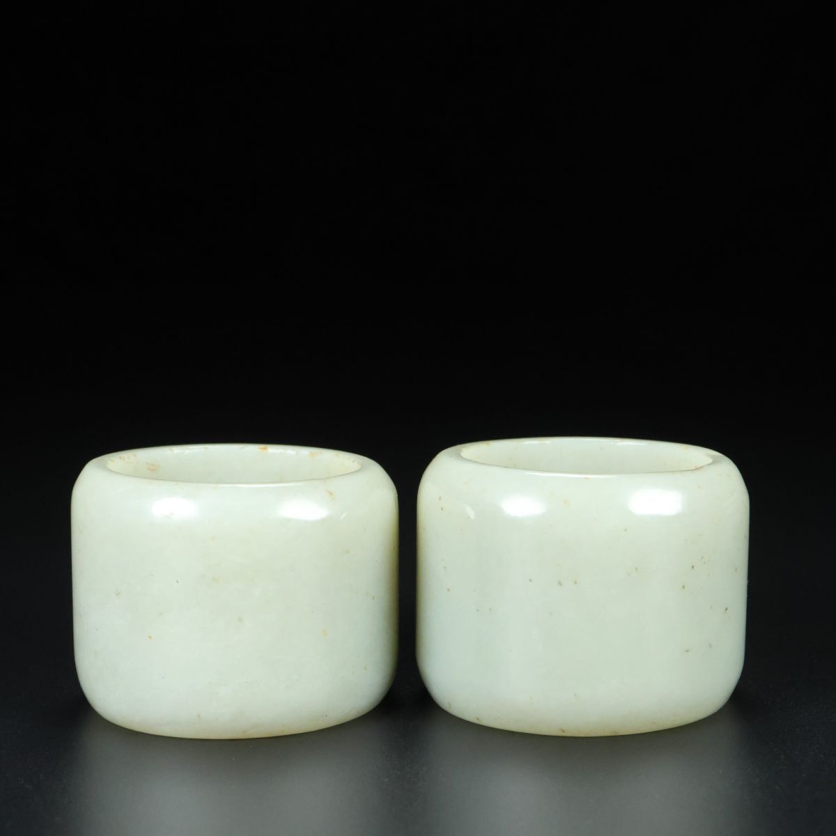 - 永し 清時代 和田玉 板指 指輪 一対 彫り件 極細工 裝身具 置物擺件 古美術品 時代物 古董品 収集 古美味 旧家蔵出 中国唐物 135g