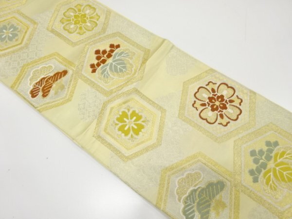 > ys7521814; 宗sou 亀甲に華紋・松桐模様織出し袋帯(材料)【アンティーク】【着】
