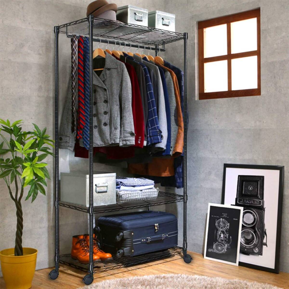 - 組み立て簡単でキャスター付きのメタル製ハンガーラック